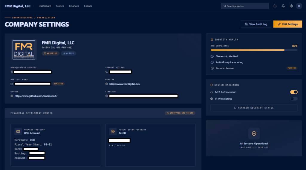 The project is actively maintained and in use. It’s not a proof-of-concept sitting in a drawer somewhere, it’s running, it’s being relied on, and it continues to evolve as FMR Digital’s needs change. The source lives on my self-hosted Forgejo instance, which itself is a reflection of my preference for owning my own infrastructure.
